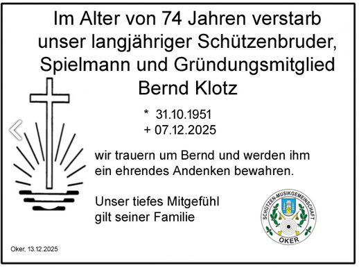 Spielmannszug: Proben donnerstags 19:30 Uhr in der Begegnungsstätte Oker - Winterpause bis 05. Februar 2026